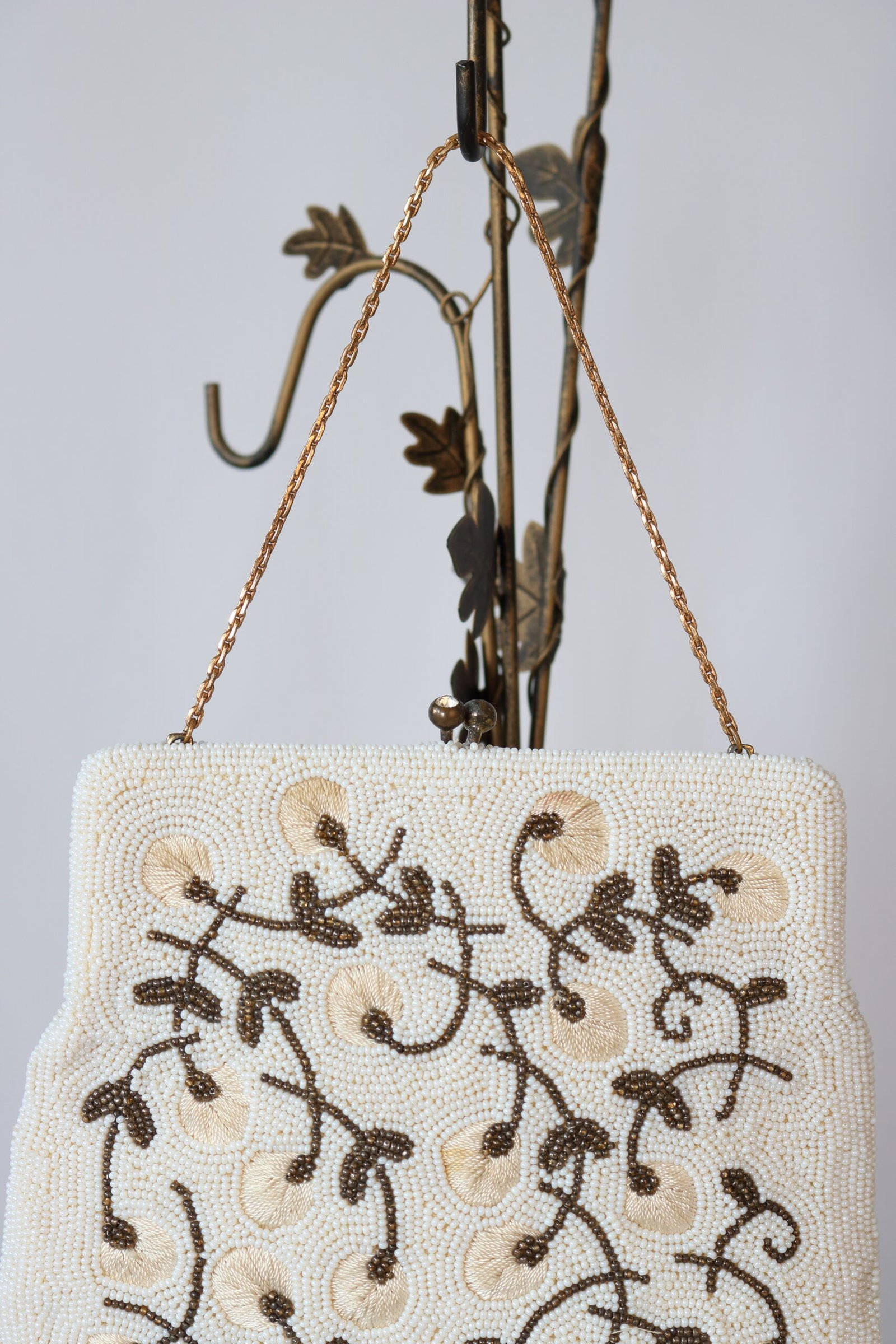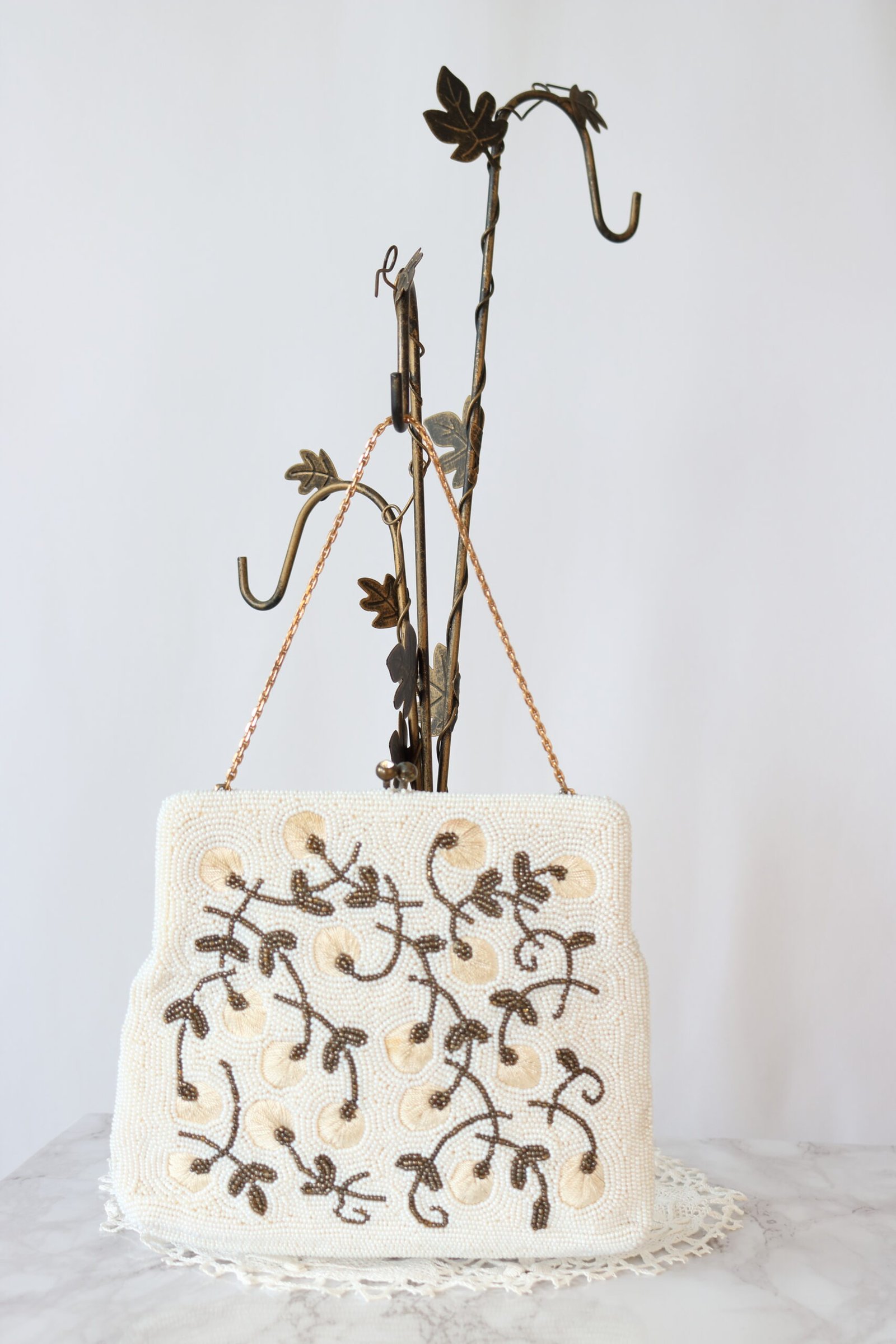 Cream Floral Hand-Beaded Bag – Made in BelgiumCream Floral Hand-Beaded Bag – Made in Belgium